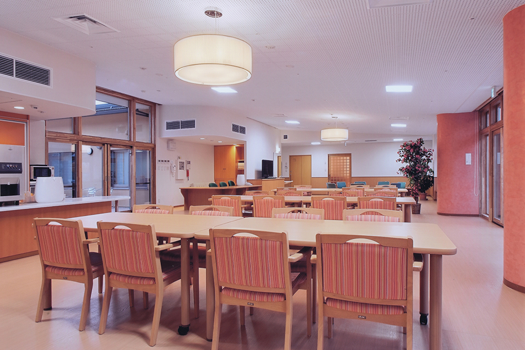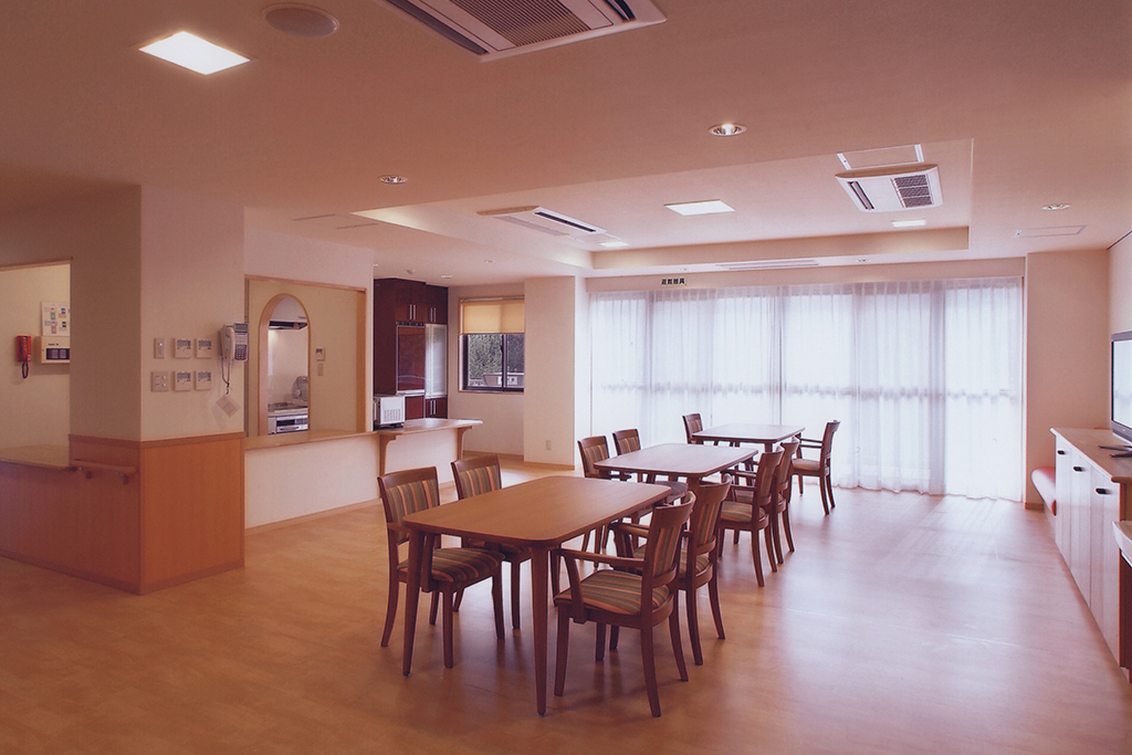 | 共用設備 | フロント、ラウンジ、コミュニケーションルーム(機能訓練室)、談話・喫茶室、 ヘアサロン(理美容室)、和室、相談室、売店、リネン室、化粧室、エレベーター、 ユニット毎にキッチンコーナー、テラス、ダイニング&リビング、一般浴室、スタッフルーム、特殊浴槽 |